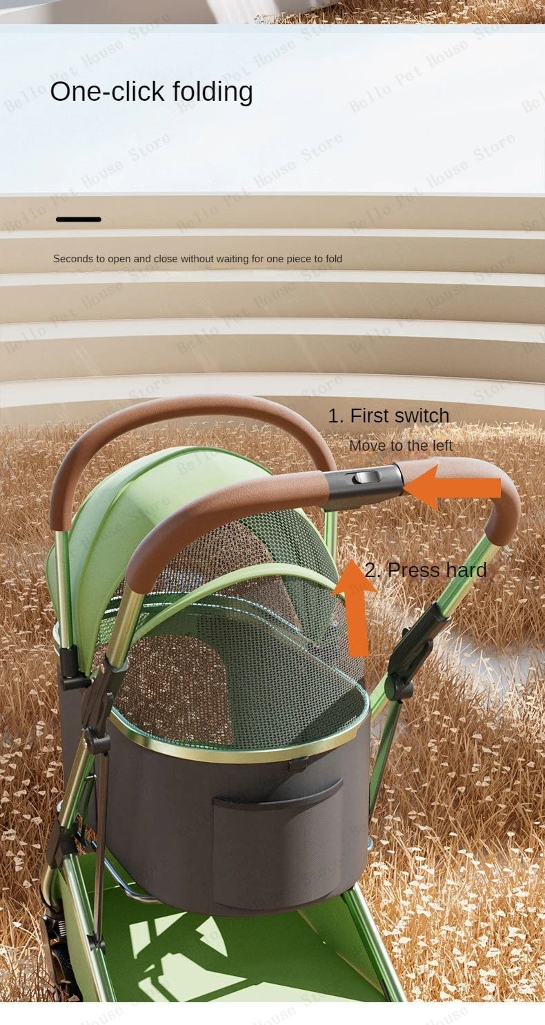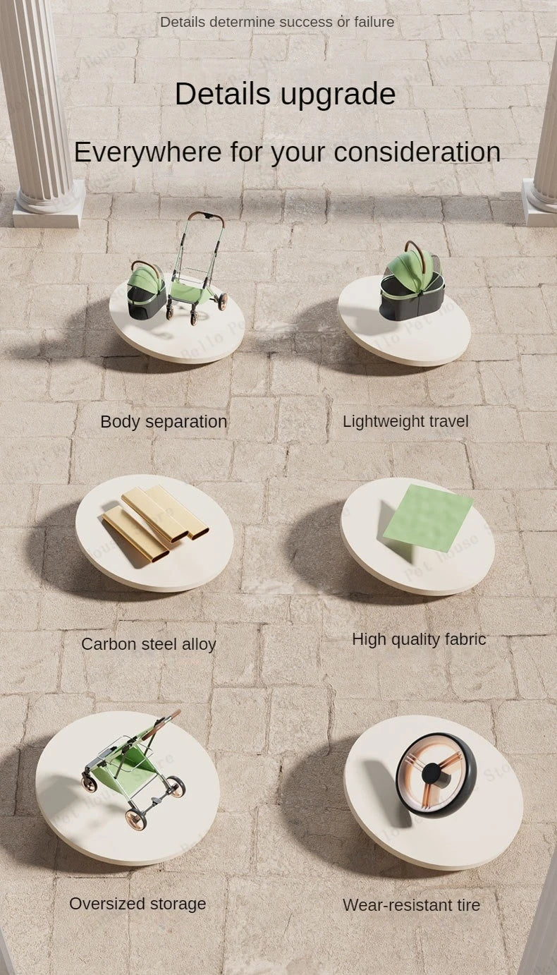 Detachable Pet Stroller Ultra-light Portable Outdoor Cat and Dog Stroller Aluminum Alloy Frame Four-wheel Shock Absorber